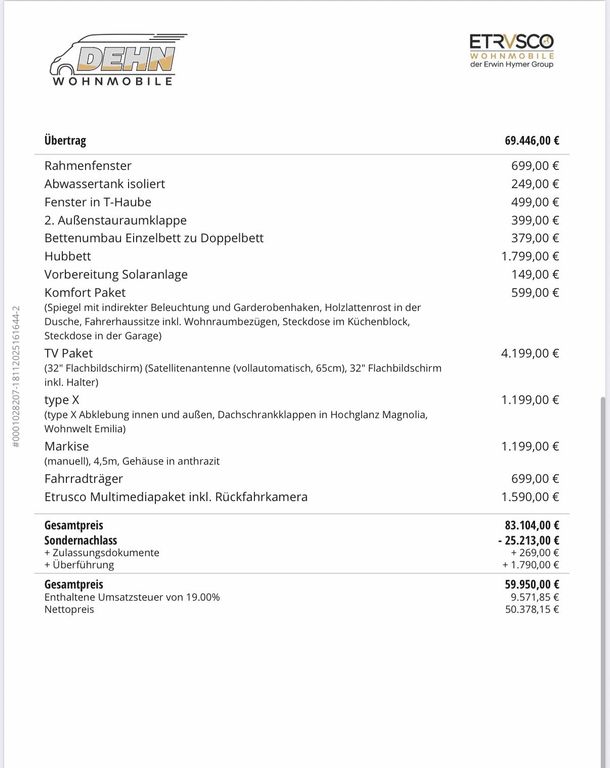 Das Fahrzeug ist professionell aufbereitet und wurde technisch und optisch durch einen unabhängigen Sachverständigen geprüft. Durch unsere hauseigene Vertragswerkstatt haben wir bereits notwendige technische und optische Arbeiten durchgeführt, um Ihnen das Fahrzeug in einem bestmöglichen Zustand präsentieren zu können. Bei Bedarf rüstet unsere Meisterwerksatt Ihnen nahezu jedes Wunschzubehör nach, wie z.B. Anhängerkupplung, Markise, Solar, Marderabwehr, Winterräder und vieles mehr. Gerne bieten wir Ihnen eine Gebrauchtwagengarantie und einen bundesweiten Zulassungsservice an. Sollte der Weg zu uns aufwendig sein, können wir das Wunschfahrzeug zu Ihnen überführen. Sprechen Sie unser Verkaufsteam dazu gerne an.